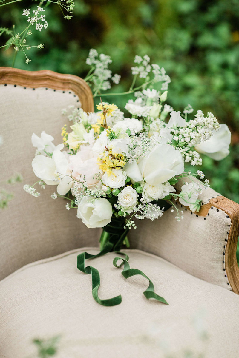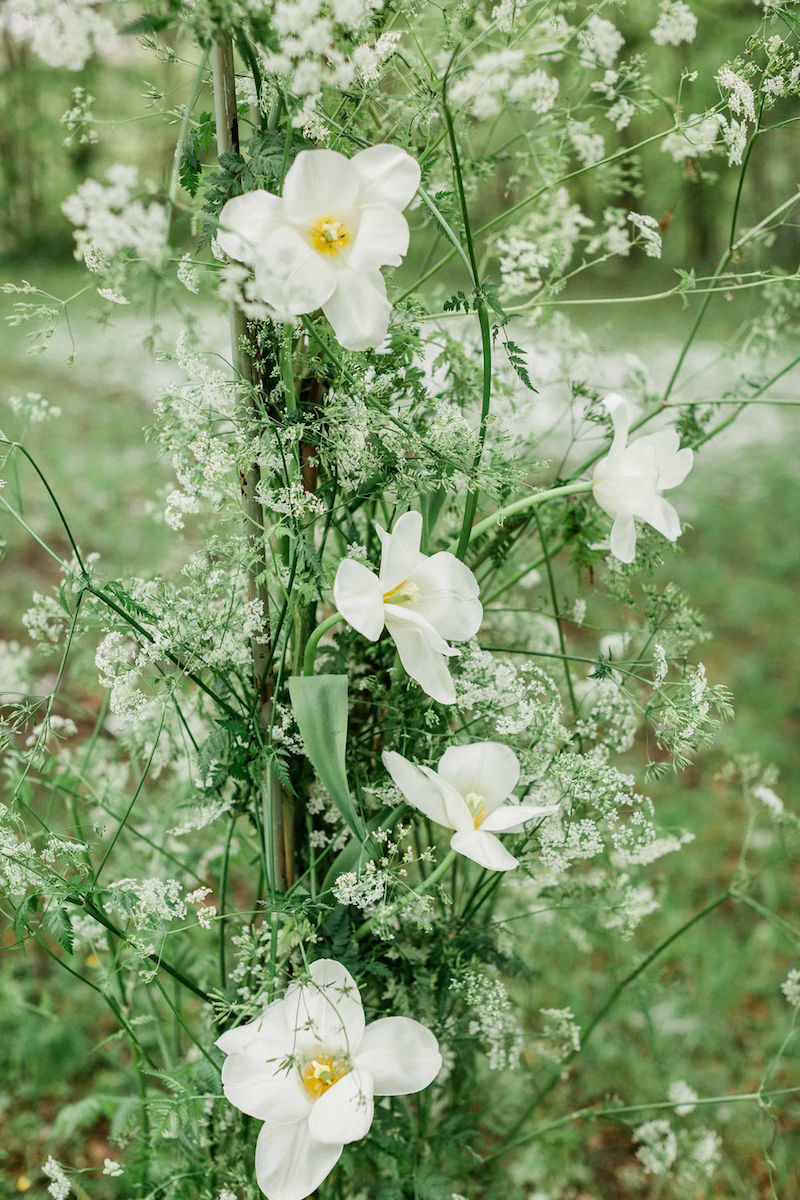 L’équipe de la Maison Dautel créa un décor floral bucolique, printanier en réponse à notre environnement verdoyant. Tulipe, forsythia, pivoine, lilas, œillet, myosotis, lisianthus, pois de senteur… Les fleurs travaillées furent une ode à la féminité, à la délicatesse et au romantisme.